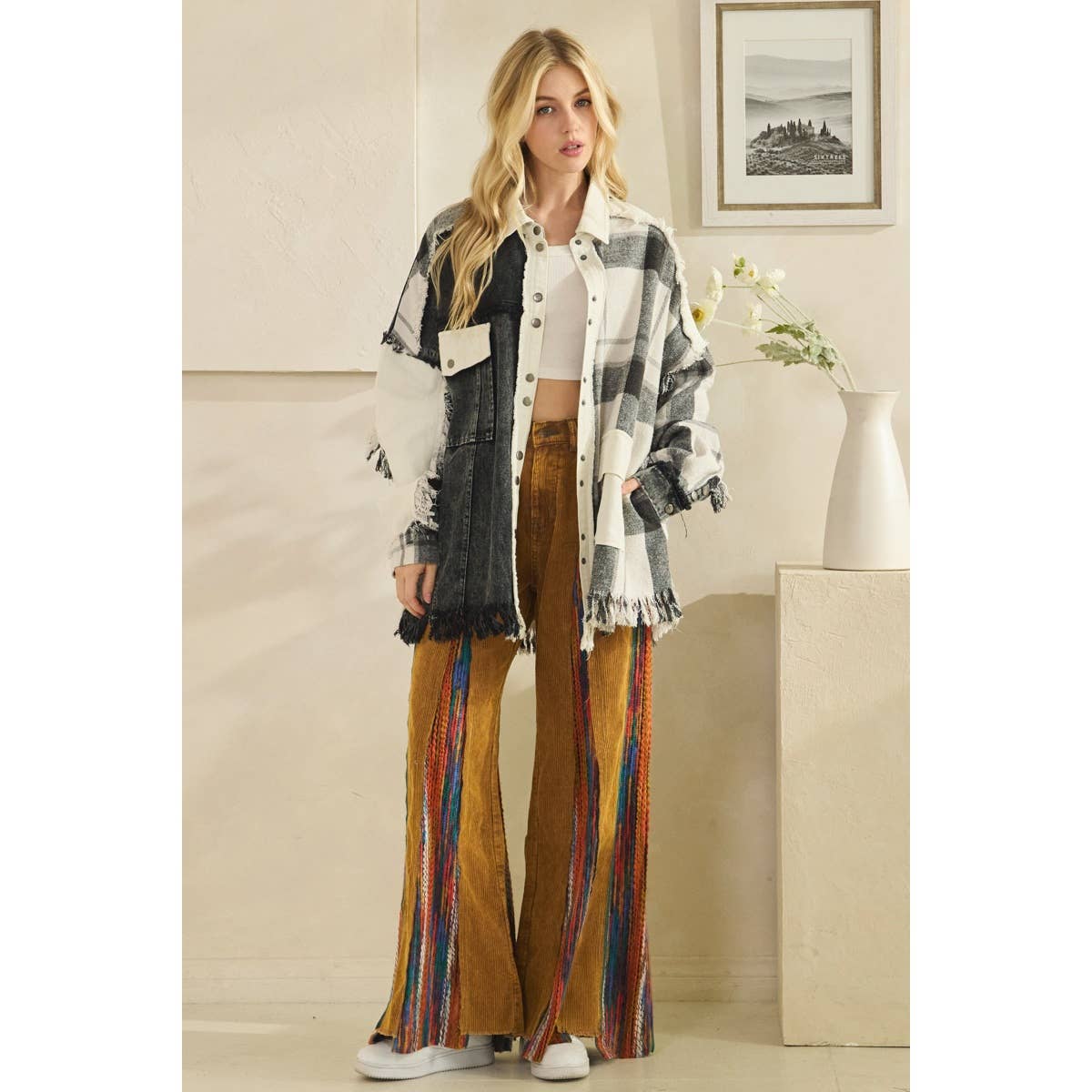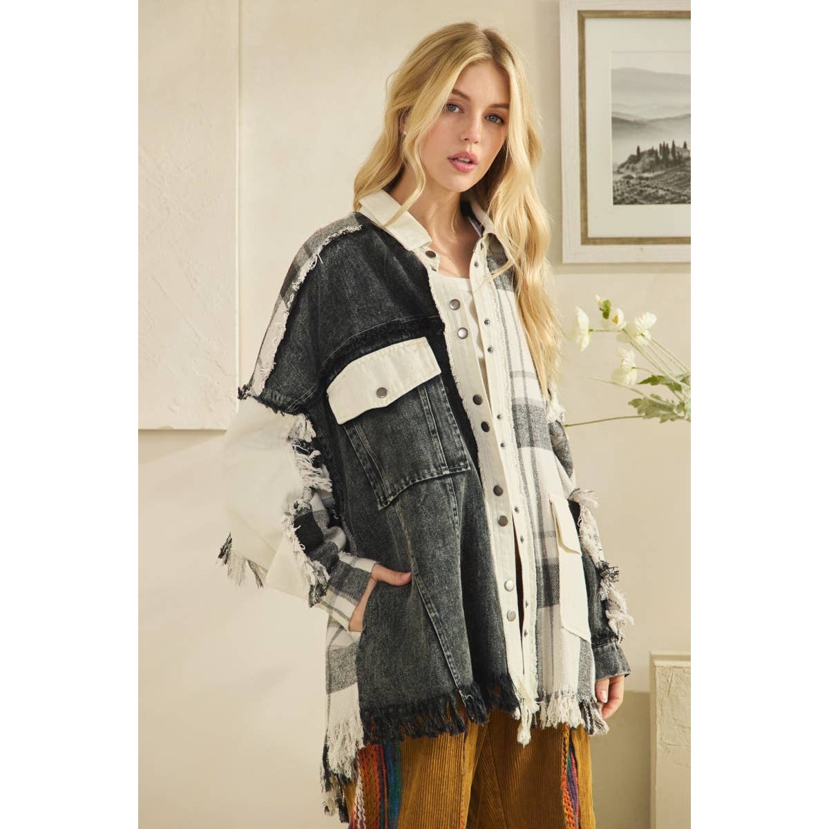 black&white flannel shacket